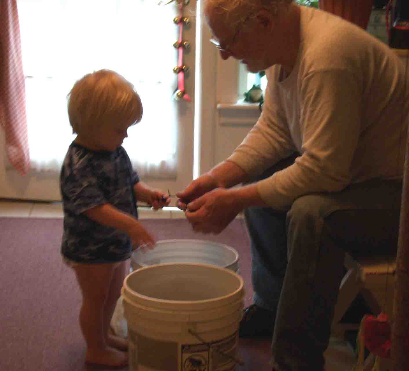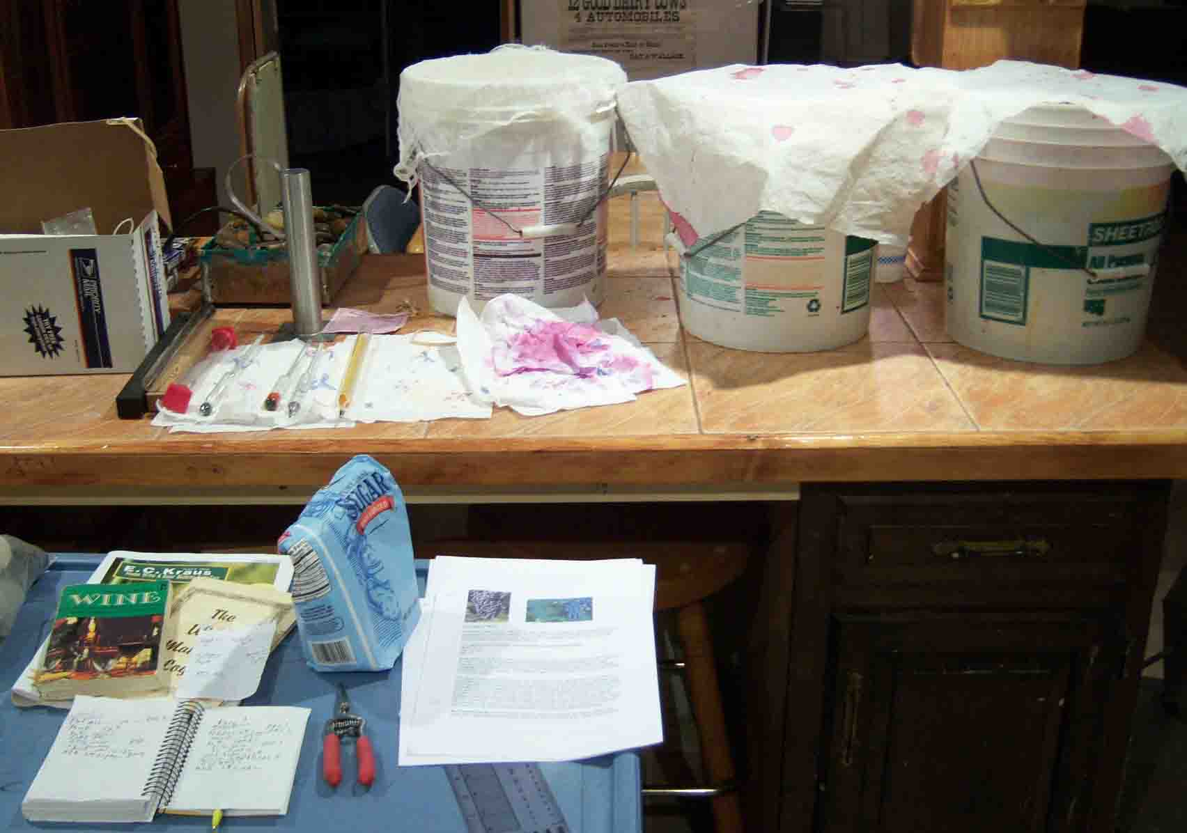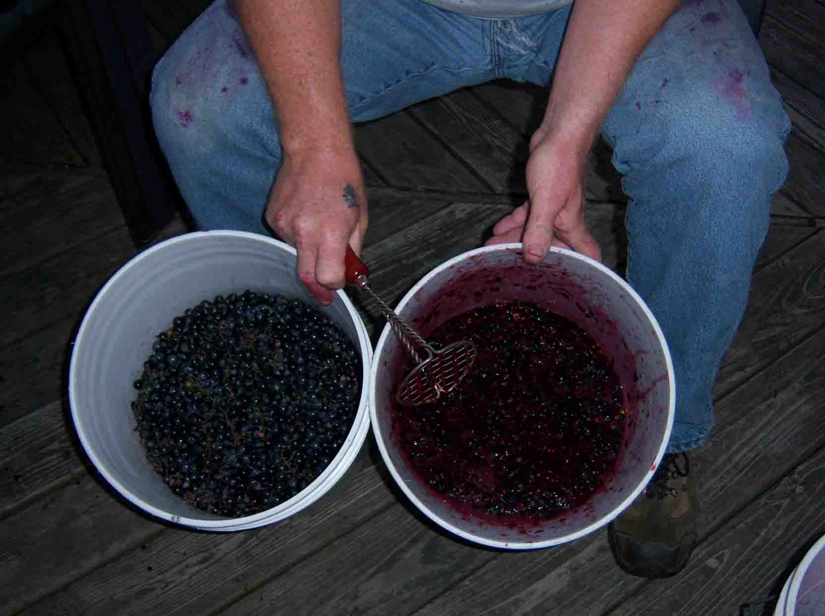 "Geo and Ryder stripping grapes"----"Starting the mashing of the Frontenac"