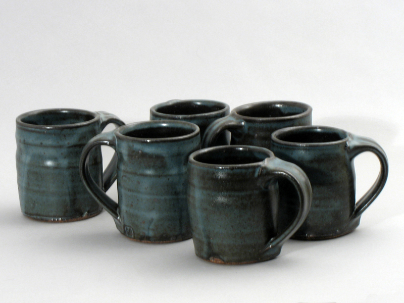 Mugs, blue glaze 3 1/2" x 4 1/4"