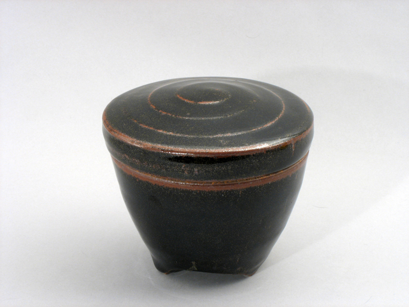 Lidded jar, tenmoku glaze, 4 1/2" x 5 1/2"