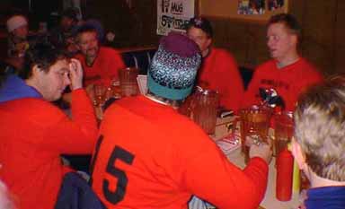 Jerry "Steak" Shurhamer, Mike "Oi vay" Fay, Jared "Agitator" Agerter, and Mark "Storm Warning" Novak all played well, in-spite of bouts with the referee not calling all of the plays correctly. Ross "Spud" Hedin said, "the ref should go on a diet so that he can run up the ice to keep up with play". Several bad calls, including a goal scored off the hand of one of the Wagon players, made a long evening even longer.