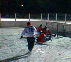 Duane "Pipe" Koshiol had a miss off the iron in the Bats best rush on net of the evening. "After the wind picked up and blew all that snow in my face, I wasn't sure which goal I was shooting at, so I'm glad I hit the pipe in case it was our goal", said Koshiol.