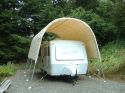 Shelter for your Bigfoot – “Raising” a hardware store canvas shelter over your trailer. |