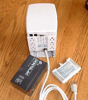 Second, you must use this like you would any simple, stand alone, inverter. Do not try to wire this into your trailer's 120 VAC system!!! Plug any small appliance you might have directly into the rear of the UPS. If you attempt to integrate something like this into your trailer's AC system, you must have a lock-out system that prevents shore power from reaching the inverter output. If you don't, you likely will make sparks and possibly some fire. (If you want that kind of system, you'd be better off moving to higher end equipment, like a Xantek inverter/charger.) For that reason, you need to cut the 120 VAC cord coming out the back and cap off the individual wires. Even better would be to get inside the inverter section and disconnect the AC power cord completely.