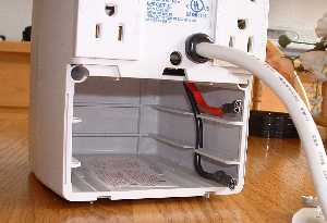 Here's a view from behind. In this UPS, the battery pack slides into a large slot in the bottom. The battery is a sealed unit so isn't servicable itself. New ones can be purchased off the internet for various amounts. A replacement for this unit would cost about $35. I likely will do that, since it's cheaper than buying a whole new UPS. One question that might affect whether you try to refurbish your UPS with a new battery is this: Suppose it's the battery charging circuit that's at fault?