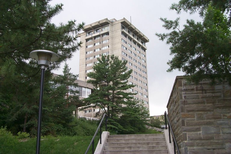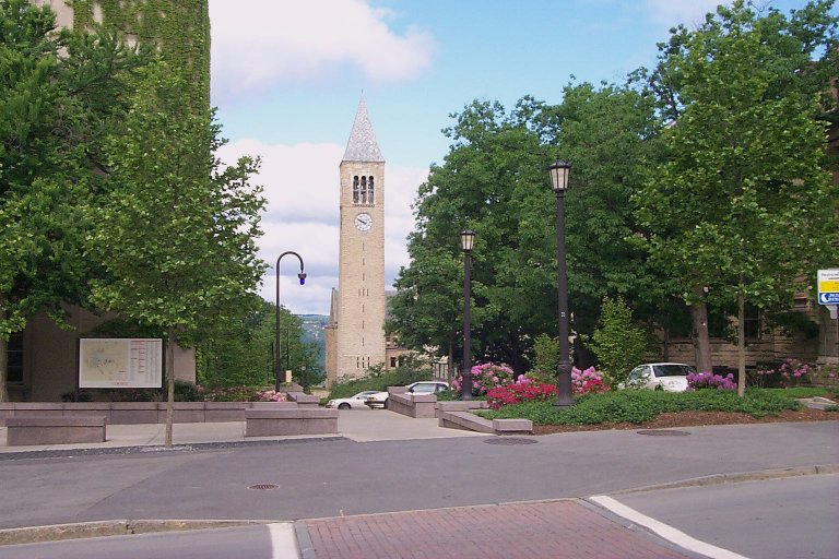 Library Tower looking west from East Avenue on the Cornell University campus |