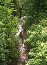 Cascadilla Creek and gorge viewed from the Central Avenue bridge adjacent to Collegetown |