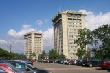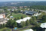 Part of the Ithaca College campus with Cayuga Lake in the distance as seen from the fourteenth floor of the East Tower |