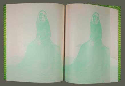 Bride Book : Red to Green This is typical of the books I made in the 1970s which explored possibilitoes of the offset press. Two plates, printed in red and green, with ink turned off, caused the bride to fade away and re-emerge. |