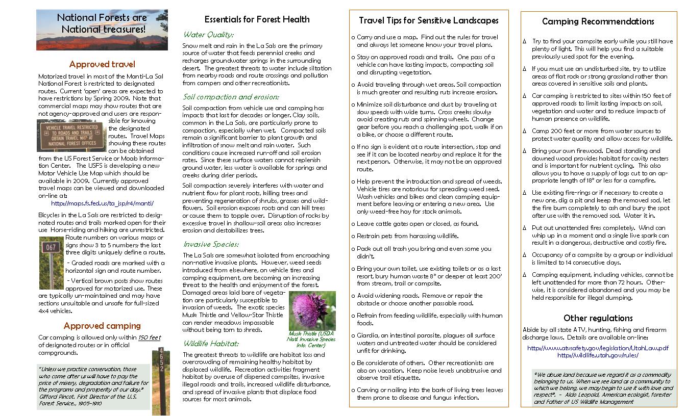 | La Sal Travel Maps | Ownership and Management | Nature and Cultural History | Recreation in the Natl Forest | Printable Brochure | Projects and Partners |