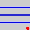 When drawing the individual frames, sometimes erasing is easier than drawing, and sometimes it helps to draw a middle image or the last image or a composite image first. For the bouncing ball animation, I first drew the composite image on the left. That way I had all the balls properly located in positions relative to one another. Next I made 8 copies of this image. In each copy I erased all the balls except the one needed for that frame, then added in the "motion lines. For the Home animation from my homepage I drew the last image first, complete with chair, lamp and "Home", since it had all the elements and was the "composite" or foundation of the animation. To produce the other images in the sequence, I made several copies of this image (I safely saved the original in another directory) and modified them by erasing some areas (like the lamp and the word Home), repositioning others (like the chair), and adding in the moving man. This way it was easier to make sure that the shape and position of the chair and lamp were the same in each image.