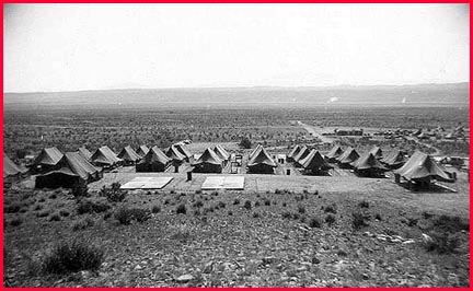 The Army Corps of Engineers had prime responsibility for building the camp and a detachment of engineers was permanently assigned. However, they did not have enough manpower to accomplish the task. Soldiers from the 495th AAA Msl Bn and Nike Ajax Package Crews in training at the ADA School at Fort Bliss, TX were sent to the camp TDY to augment the engineers. Some stayed a couple of weeks, others longer, some permanently. Ron Pickinpaugh and his Package built much of the early camp. Tasks included building wooden frames for squad tents (seen here), pouring concrete pads, building the mess hall, roads, latrines, missile assembly area, missile launch bunkers, communication facilities, everything needed to place a missile launching camp in the middle of the desert. Less enjoyable tasks included KP, cleaning the showers, latrines and hauling trash. The one job which never ended was hauling potable water from Carrizozo to the camp. It was done every day of the camp's existence, usually several times a day.