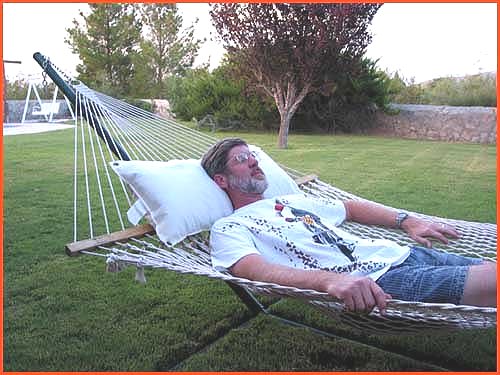 Photo: When not at work in the Public Information Office (PIO) at White Sands Missile Range or riding his mountain bike, Jim enjoys soaking up some rays at his home in Las Cruces, NM.