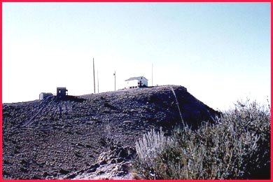 That is the Commo Shack on top of the hill. Also up there but unseen in this photo is the Range Operations building. Range Ops was the nerve center for the range during Nike firings. It took a lot of coordination to launch missiles. White Sands Proving Ground had to first authorize "Green Time," a period of time when all aircraft and surface traffic were restricted from the area and we were cleared to fire missiles. Oscura Range Camp to the south was home to The RCAT Battery which launched and controlled flight of the RCAT drones we used as targets. They had to get drones into the air in a timely manner and keep them there until we were fired out. The Fire Department and Medics and Military Police all had tasks to perform during launches. In addition, a group of civilians would probably be up there to view the exciting launch as well as the two RCATS on display you saw in an earlier photo. A tour guide would be with the VIPs, explaining what was going on and what to expect next. A tall flagpole was there from which flew a long slender red flag, a sign that the range was "Hot" and launch was imminent. The Hot Range flag was visible all over the down range area. Roadblocks had to be established to stop vehicles from accidentally wandering into a launch area or Booster Alley, where the spent boosters would impact. The narrow gravel road up the hill was dangerous in good weather, treacherous in winter when it iced over. It was used every single day of the camp's existence because the Commo Switch was manned 24/7.