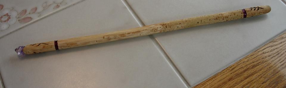 This projects page contains some assorted projects that do not fit into a specific category. They are the TTL 24 Hour Clock project , Willow Branch Wand, Homemade subwoofer/amp, Facts about Factorable Numbers and a Software Portfolio listing software that I have written. Other projects that are either longwinded or can be bunched into a specific category appear in a sub index below Projects Page on the left. CAFL Control Algorithm - Research into using Cellular Automata and Fuzzy Logic in control system algorithms. DOS Bootsector - Did you ever want to know what a boot sector is and how DOS handles booting form a floppy, directories and files? This article investigates what goes on by using DEBUG to take a microscopic view of DOS file systems. The DFP Project - Overview of audio analysis & processing using software that I wrote in the mid to late 1990's. Linux Page - A short piece on my experience with Linux and screenshots of running a Windows app on top of WINE in Linux. Music Page - Sound files generated by the DFP software on the PC. Recursive Logistic Eqn - The recursive logistic equation provides some unique insight into how chaos can emerge from simple math. kx(1-x) is the innocent looking equation. Who would ever expect chaotic behavior from it. Visit this page for the details. RF Electronics Projects - This is the projects page specific to RF projects. Such as homemade AM & FM transmitters, VLF rcvr. Temperature Data Logging -I have also been working on some electronic hardware (micro-controller based) and software for it and a PC for weather data logging. Wind Chime - In the winter of 2004, I built a windchime with 5 chimes. It uses the pentatonic scale, in which an octave is divided logarithmically into 5 parts. It is built from copper tubing. Page has theory and pictures. Energy Study - See a basic energy study of the house on the House page of this site. TTL 24 Hour Clock This is it, the crazy clock built out of TTL 7400 series chips. It starts with a 10 MHz 7400 inverter oscillator and divides down using 7490 decade dividers set up to divide by 6 or 10 as needed. Some AND/OR logic appears in the design as well to provide a pseudo WWV time code, 1kHz second ticks, minute and hour marker. This output is provided as an amplified audio output. This is dome using a small 1 stage transistor amplifier driving the 2 inch speaker, with series resistor to limit volume. A 1/8in jack is provided as well for driving a larger speaker. The marker is also able to modulate a 1MHz output for a test signal. Three modes of output are provided, 1MHz carrier, 1MHz modulated with steady 1kHz signal and 1MHz modulated with pseudo WWV time signal. This signal and 100kHz,10kHz,1kHz are provided as buffered outputs for off the board use. The display itself is an array of dual 7 segment common anode 0.75 inch elements, with appropriate 7-segment drivers. Setting is via 3 pushbuttons. Two provide speedups of seconds 1000X and 10X to roll the clock ahead faster than real time, a third button is a halt button for syncing with another clock source. A 10Hz 'heartbeat' LED is provided for debugging purposes. This is connected at the junction between both boards. One board is the oscillator and divider to 10Hz and the test outputs (1MHz,100kHz, 10kHz and 1kHz. Pseudo WWV 1MHz and audio) and the other board divides down further and has the display and the drivers for the 7-segment LEDS.(3/2007) Willow Branch Wand This wand was made from a willow branch that had the bark and small irregularities stripped using a milling cutter in a drill press. Then it was dried out and straightened by clamping it against a 2 x 2 inch piece of wood in the oven at 150 deg F for a few hours. Then it was hand planed, sanded with 80 grit followed by 400 grit sandpaper. The one end was rounded by using the sandpaper. The other end was cut concave using the same milling bit in the drill press. Then it was drilled out to provide the mount for the crystal. It was then carved with an X-Acto knife. Four willow branches were carved into it followed by the 2 rings near the top and bottom. Then it was stained slightly using coffee. When it was wet with the coffee it was clamped against the 2x2 and placed in the oven at 150 deg F to dry. The willow branch carvings were then burnished with a soldering iron with the tip ground sharp to a point. The wand was then masked off around the carved rings and these were painted. The amethyst crystal was then mounted using epoxy while the wand was held upright in a bench vice. This provided an opportunity to give the rings a 2nd and 3rd coat of paint. The next day the masking tape was removed and the wand was given a light sanding with 400 grit paper to remove grain that was lifted after staining. This also sanded off any 'overpaint' from paint seeping past the masking tape. Then it was rubbed with boiled linseed oil lightly. Being that this was a rush project it was once fixtured for straightness and put in the oven for 3 hours at 150 degrees F. In conclusion willow is a nice soft wood to work with. It carves and sands easy. It also is quite bendable. I selected the straightest piece I could find with a minimum of knots. While it dried with the bark on for several weeks it started to bend. I was able to unbend it through wetting and drying clamped against a 2x2 in the oven at 150 deg F. for a few hours. It has retained its straightness so far.(12/2005) Homemade subwoofer/amp Here is a picture of the subwoofer in the truck of my car, pushed back for clarity. Normally it sits right up against where the back seat is and leaves plenty of truck space left. The design constraint on size is being able to get it in the trunk opening. So the size is about 17 inch wide 19 inch tall and 26 inches deep. I designed the cabinet for primary resonance at 130 Hz, the bass reflex slot at 80 Hz and the 12 inch 500W Peak cone is self resonant at 33 Hz. The Q is pretty high. The amp is capable of 250W, which is much more 