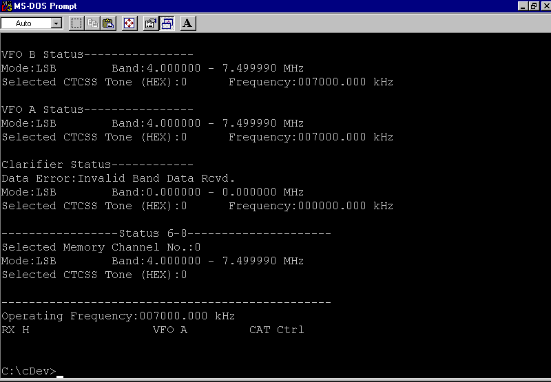 CAT Transceiver Control Program Controls a Yaseu FT767GX HF Transceiver using a PC via the serial port.