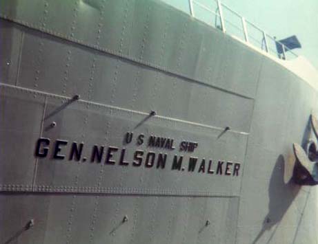US Naval Ship General Nelson M. WalkerMost famous for transporting the men and aircraft of the 192nd Assault Helicopter Company to Vietnam in October, 1967.That's right, a Navy ship named after an Army guy taking Army guys and their helicopters to war!Does the photo bring back fond memories, like seasickness?Photo by Bob Foster trebor@usachoice.net |
