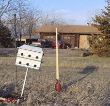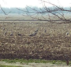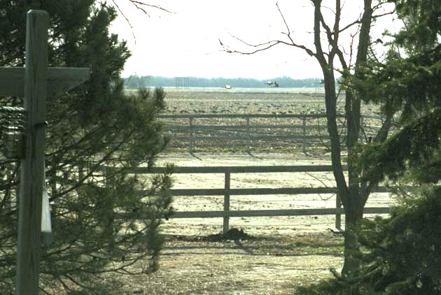 Platte. Cranes feed in the fields nearby and sometimes venture within only about 25 yards of the house. They are awesome when flying, particularly when they're so low one can hear their wings flapping. They're tough to photograph. There were days when there were Canadian geese, snow geese and cranes overhead. A cacophony of migrating birds. We've also seen robins, bluejays, turtle doves, chipping sparrows, a few English sparrows, a flicker, blackbirds, red-wing blackbirds, and quail. Rod is hoping to attract purple martins in the front yard. |