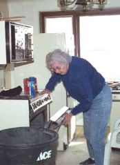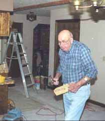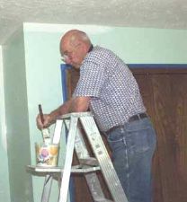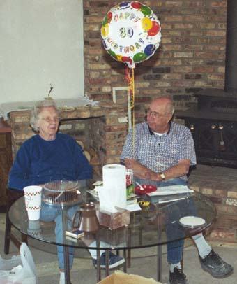Connie would take a break from city 'work' and bring drinks and sandwiches. (many times) 02/22/2002: Erv Pulver celebrates his 80th birthday by doing what he likes best; working. He was here on their 56th anniversary as well, but took the next weekend off. |