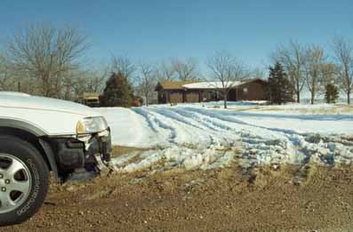 | Friday, January 31, 2002 Finally - closing day. Which happened to correspond with a taste of Winter that had been otherwise mild. We visited "our" home for the first time with Connie's parents and brother in near blizzard conditions. The front bumper of the Subaru got torn off on a previous visit when I wheeled back to turn around and caught a railroad tie lining the drive. It came off like ripping off a shirt with snap buttons. |