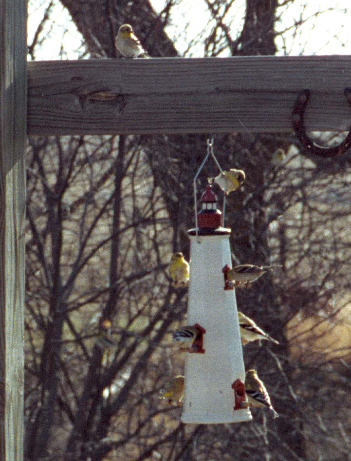 several days of waiting. Soon, a few goldfinches found the feeders and told all their wild cousins on the