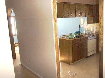 A wall between the kitchen and coat closet creating a hall - out of here. |