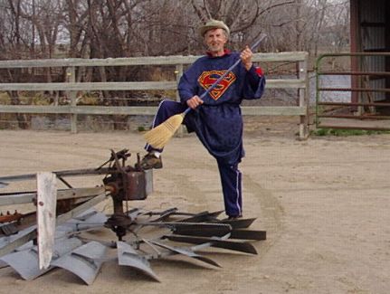 ![]() Rod has been tiltin' at windmills all his life and finally humored one into submission. It's a Dempster 12, made in Beatrice as early as 1927. Not sure how to get it up; maybe we'll have an erection party. |