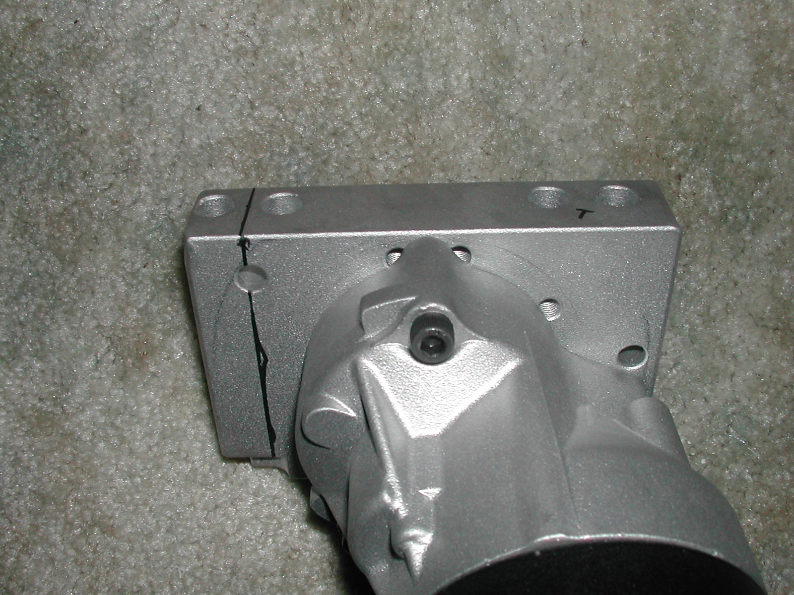 A view of the portion of the mount that must be removed. Once that is removed you can test fit the starter and mark where the new holes will be drilled.