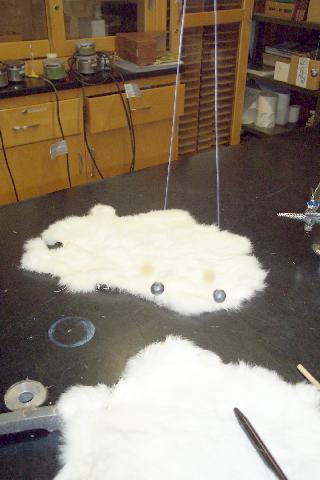 3. Using the fur, charge the rod negative and transfer the charge to the