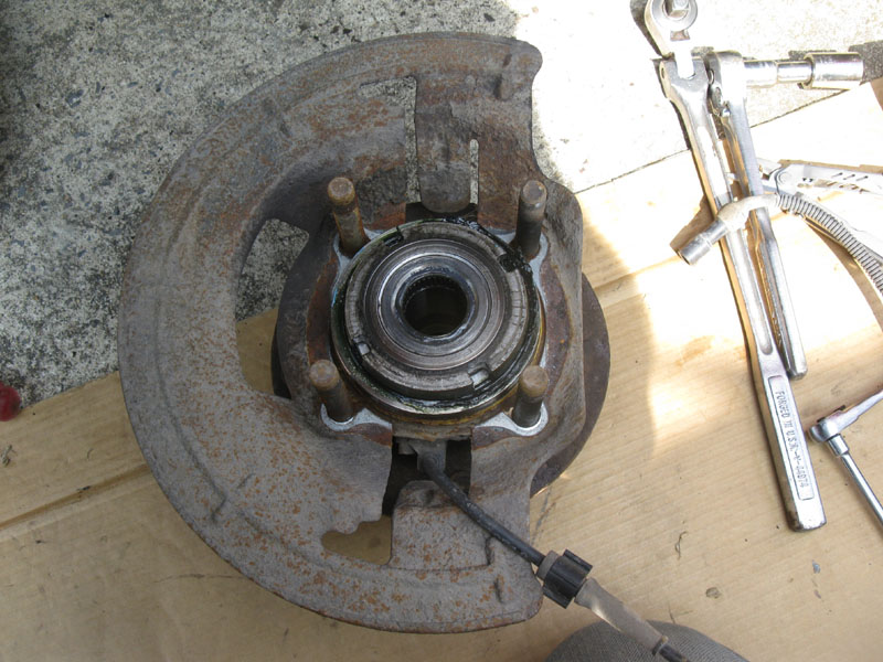 Disconnect the ABS wiring and then remove the wheel bearing assembly & dust shield.