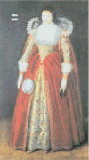 Outerwear: Waistcoat / Embroidered linen jacket with ribbon ties: #1600L08 Starts at $100 Ladies waistcoats are quilted for warmth and worn over the stays, but under the bodice. They button in the front. Embroidered linen jackets with ribbon ties were all the rage in the first decade of the 17th century. They were augmented with separate linen & lace collars and cuffs. Bodice: #1600L09 Starts at $50 Bodices were standard outerwear tops. They changed quickly through the 1600’s. High necklines, low necklines, rounded or square. Long tight sleeves, short loose sleeves, virago sleeves (see 2nd illustration for stomachers), wings, etc. Low waistlines, high waistline, basques, stomachers… Pick a painting and go with it!