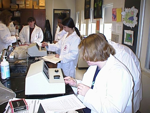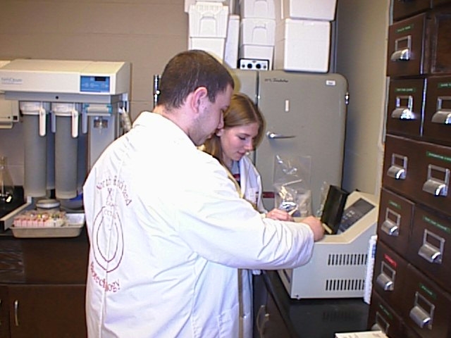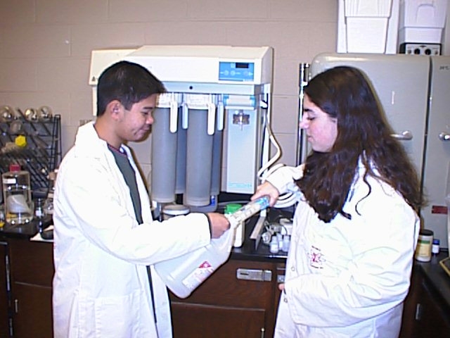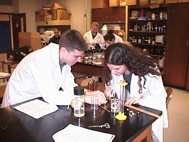 Sarah Piscitelli and Michael Losquadro doing an enzyme lab.