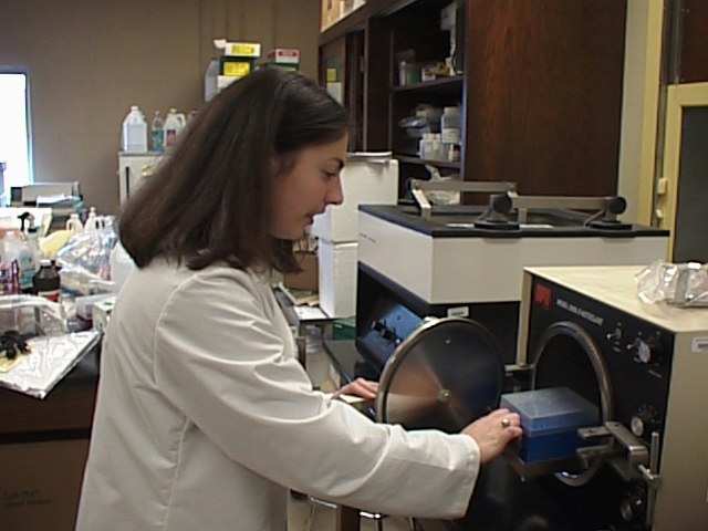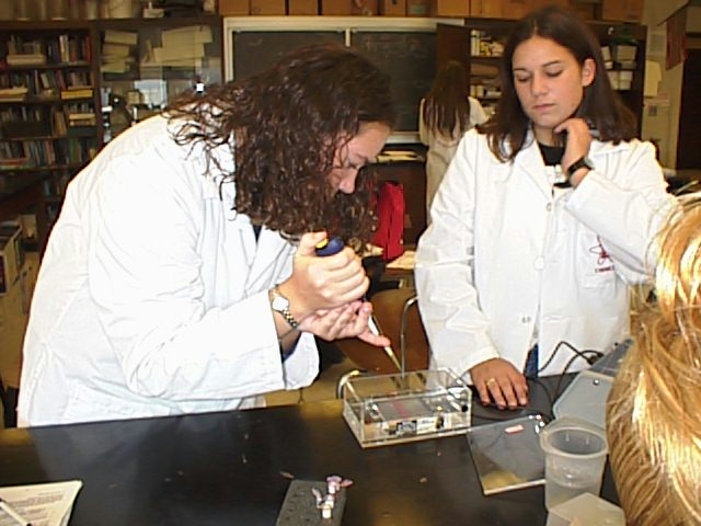 Christina Cenname and Paul Ferrer doing an osmosis lab.
