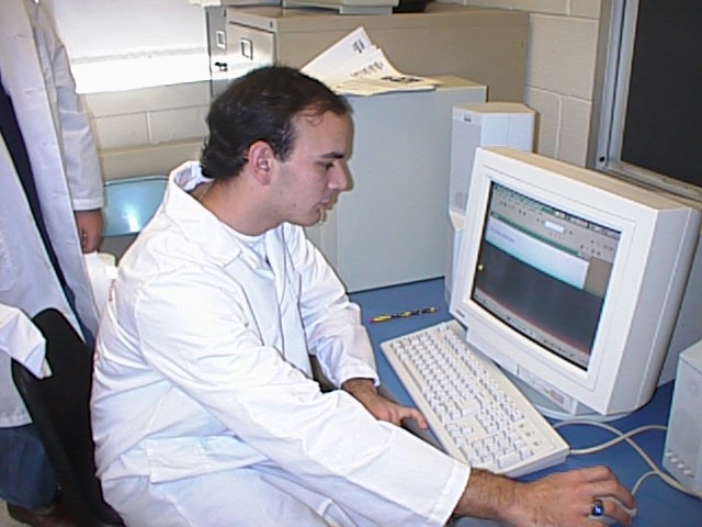 Dan Maller loads the thermal cycler donated by Perkin Elmer