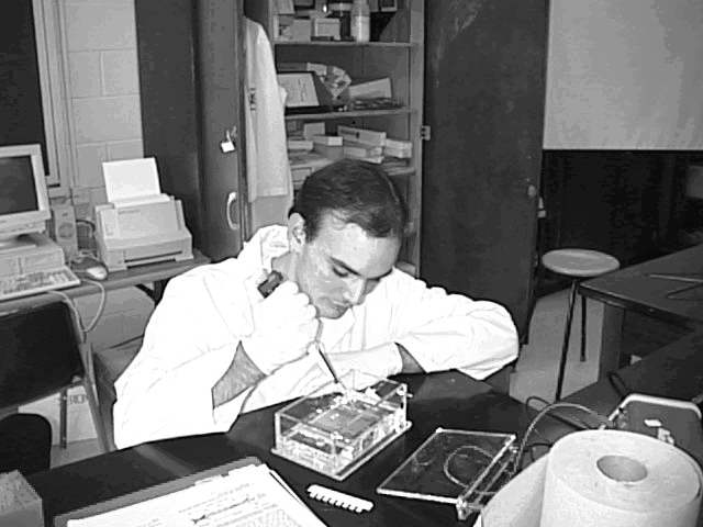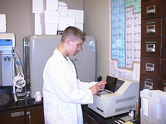 Shawn Farkas loads the electropheresis gel