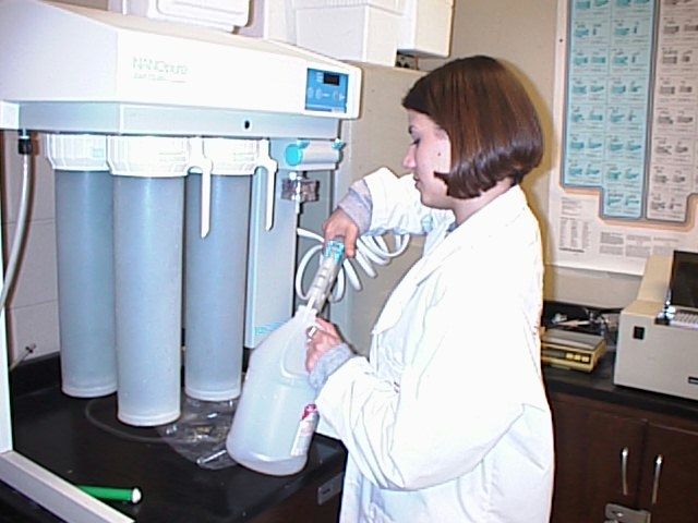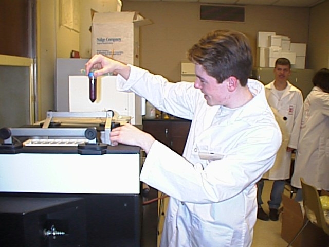 Dan Moran taking tubes out of the shaking waterbath donated by Precision Scientific