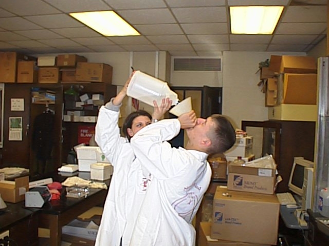 Dan Maller and Jamie Ferraro enjoy some of the products of lab work