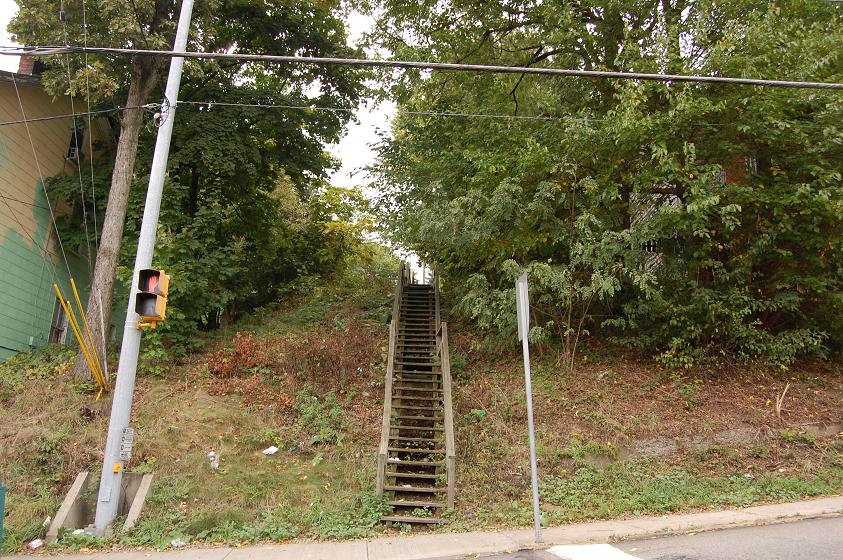 The City of Pittsburgh maintains 712 sets of steps, some of which are shown as streets on maps. Step locations are grouped by neighborhood. This page is a work in progress, here are a few: