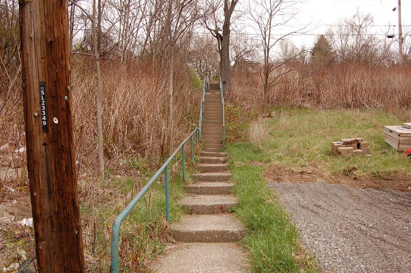 Abandoned North Evaline Street steps up from Kincaid Street to Brown Way: