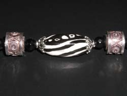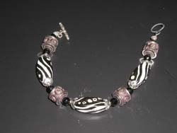 Striped Porcelain and Black Speckled Glass Beads combined with Bali Sterling Silver Beads and Clasp