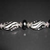 Large Black Swarovski Crstal Beads, Striped Procelain and Bali Sterling Silver Spacers and Clasp