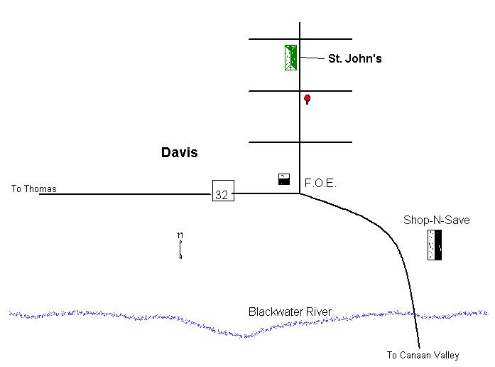 St. John's is located in the heart of Davis, WV, a small resort town in northern West Virginia. We are a short drive from the Canaan Valley and Blackwater Falls state parks, as well as the resort communities of Timberline, North Point, and their like.