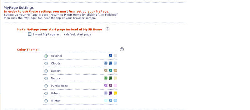 If you want to change the Color Theme of MyPage, you can do so in the Settings link. The default is blue and white, but again, this is your page, so customize it to your liking.