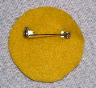 Cut a 11/2 inch diameter felt circle and put two holes in the back for the head and foot of the pin back to go through. Use fabric glue and glue the felt on the back of the pin.