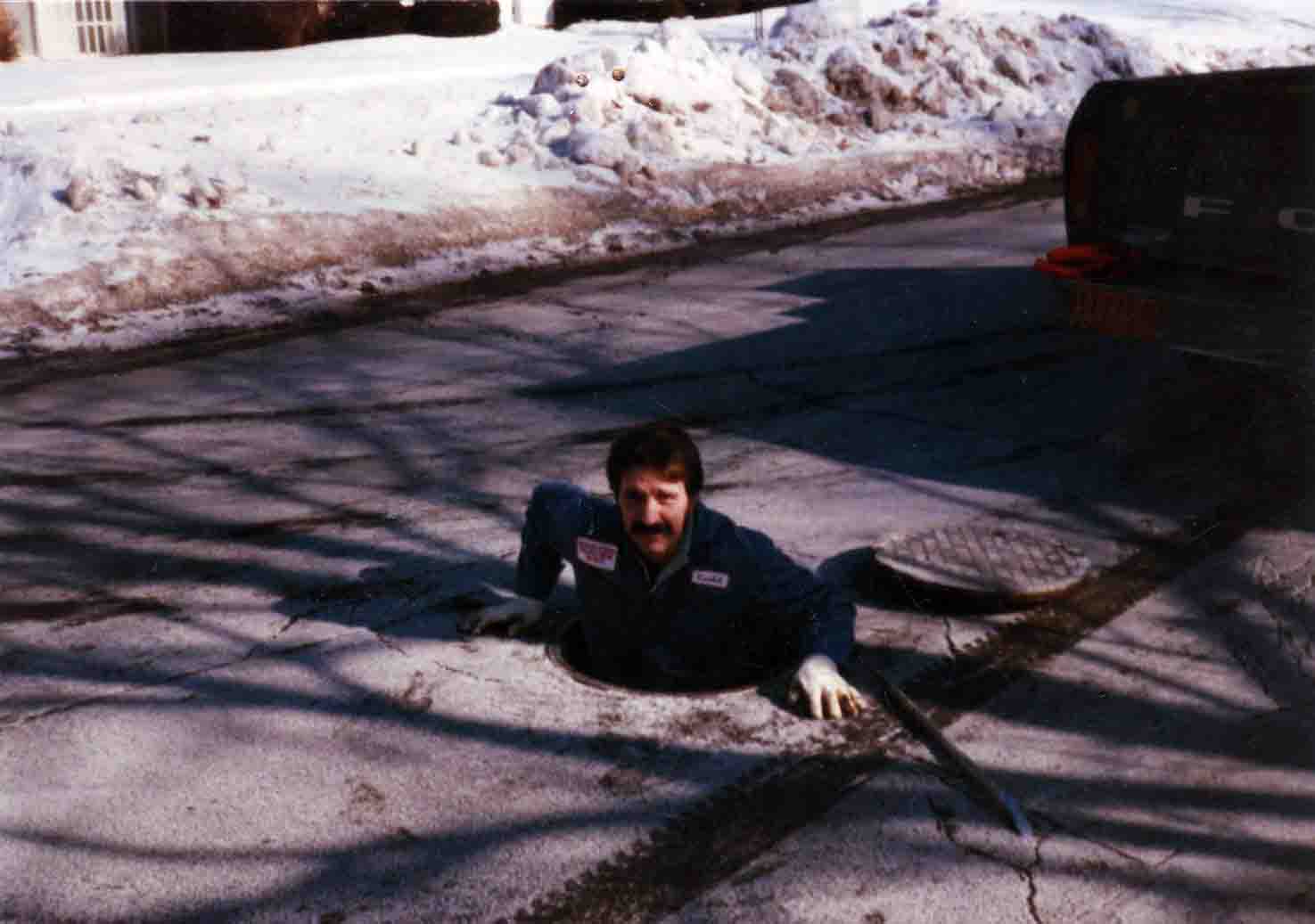 Springers repairing a sewer for the town