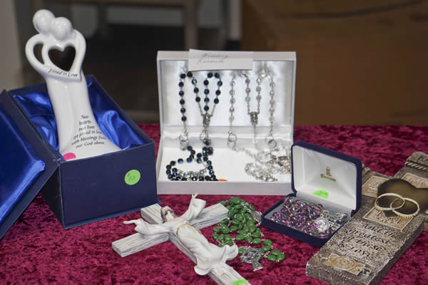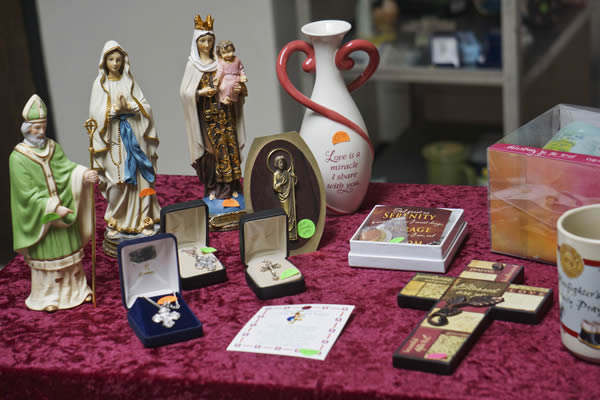 | Welcome to the St. Pius V Gift Shop! We have many items for you to choose from for all different occasions. The gift shop is located in the Sacristy and is available whenever the church building is open. Enter on the south side of the building, walk past the Parish Office and the next open door on your left is the Sacristy. The Gift Shop is on the right side. |